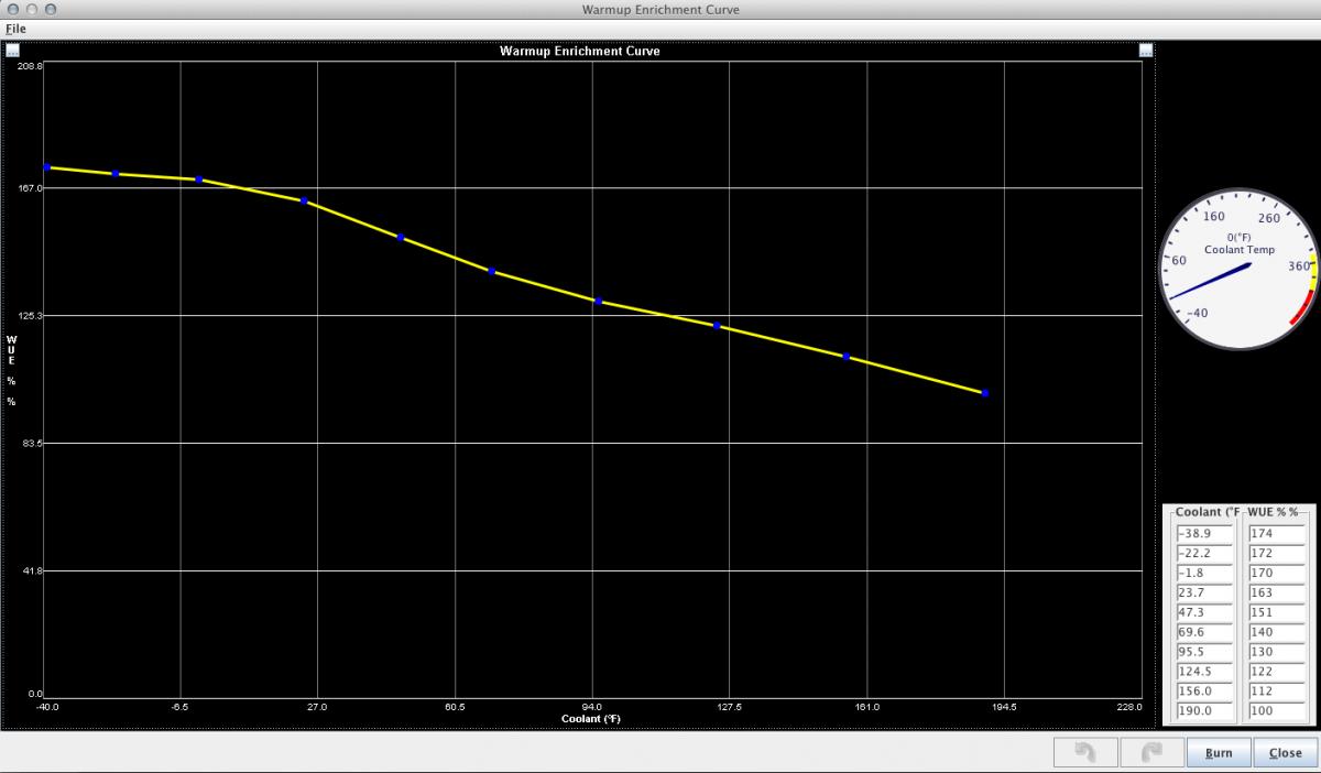 Same deal with your Warmup Enrichment Curve, you're asking for no enrichment at ~68+ degrees F. Here's mine for reference: