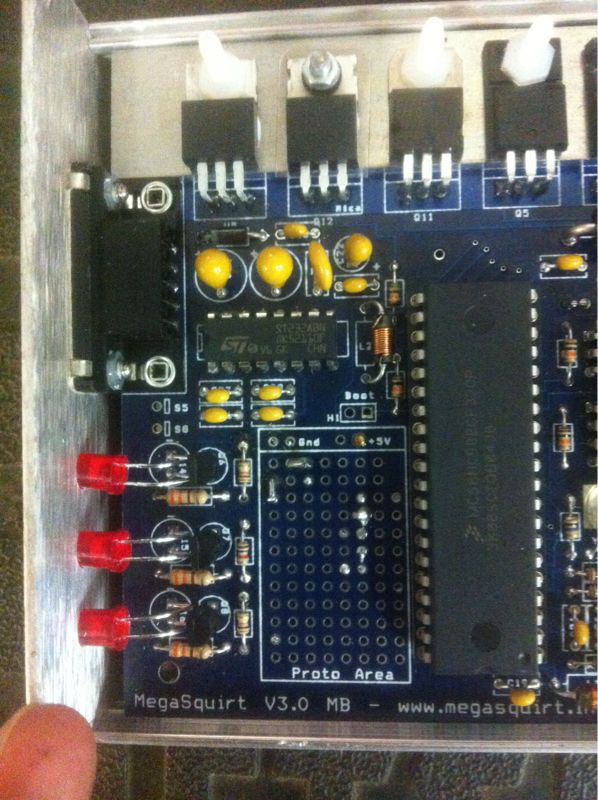 Okay, got to the shop, pulls the megasquirt, and opened her up. It is indeed PCB v3.0 (I never was 100% sure). It looks like the middle led is indeed wired up the "stock" way.