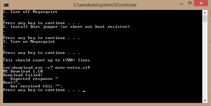 Still not able to connect with the MS. I've tried to reflash the firmware a bunch of times but HyperTerminal isn't able to connect with the MS either.