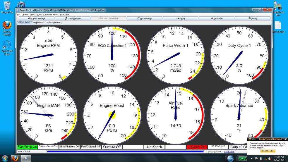 I'm obviously not outputting anything to tunerstudios ornate gauge but all connections are soldered, I crimped the ground wire to a ring and bolted it to the existing ground bolt behind the manifold. The part that confuses me is that it ran fine for weeks with ms and lc1 then randomly decided to crap out ...