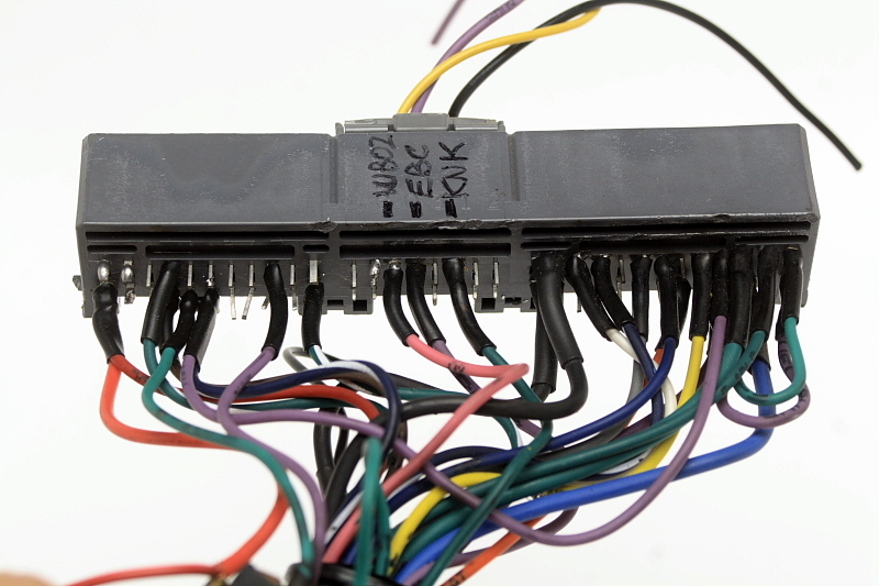 Next, here are photos of the 64-pin connector as it sits now. It doesn't look anything like what I saw on Scott's writeup for a '96 but I suppose this is irrelevant for my purposes and I just need to resolder the wires to the appropriate pins for my '91? Unless anything's changed since that writeup?