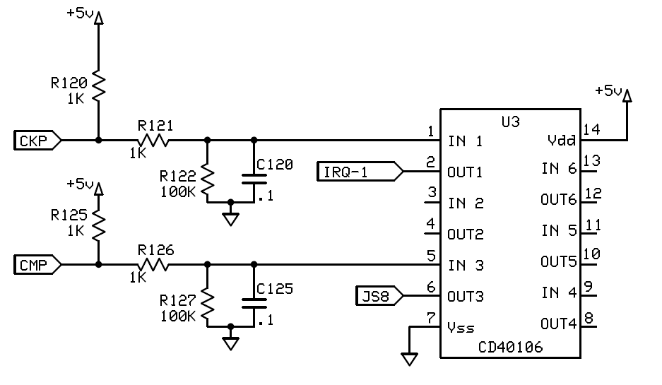 Pretty much everything that has ever been written about building input circuits for Miata-style sensors onto the Rev 3.0 / 3.57 MS circuit boards is sub-optimal. If you want reliable triggering with no fuss, you need to use an IC-based circuit that's got some hysteresis in it. I first started with the MAX9926, which is intended for use with VR sensors but also works swimmingly well with open-collector sensors, and lately I've been using the CD40106, which is a much simpler device that's not compatible with VR sensors.