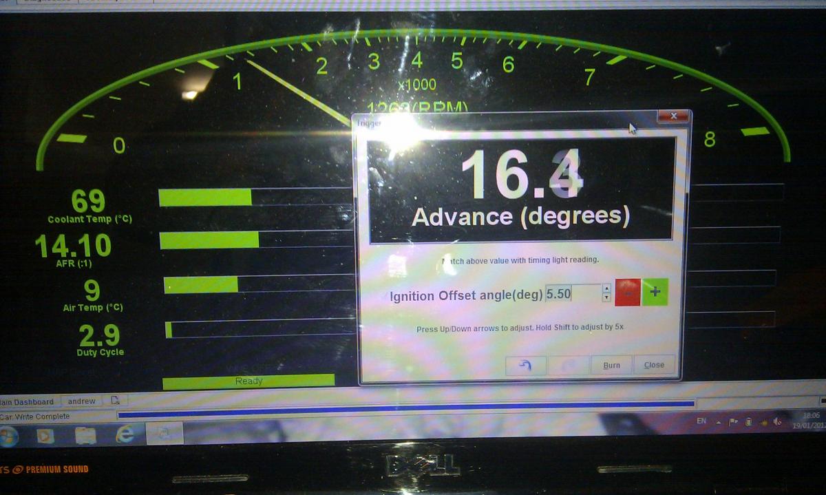 Yipeee, the EGO setting worked. I then used the trigger wizard to adjust the timing until I seen 10 Degrees on the timing light. (see pic attached) Burned to ECU and adjusted the idle down to 950 rpm. Its idling good, a bit rich at 11.6 ish. When it was warmed up I turned back on the EGO. This caused a drop in revs but it settled in a second or two.