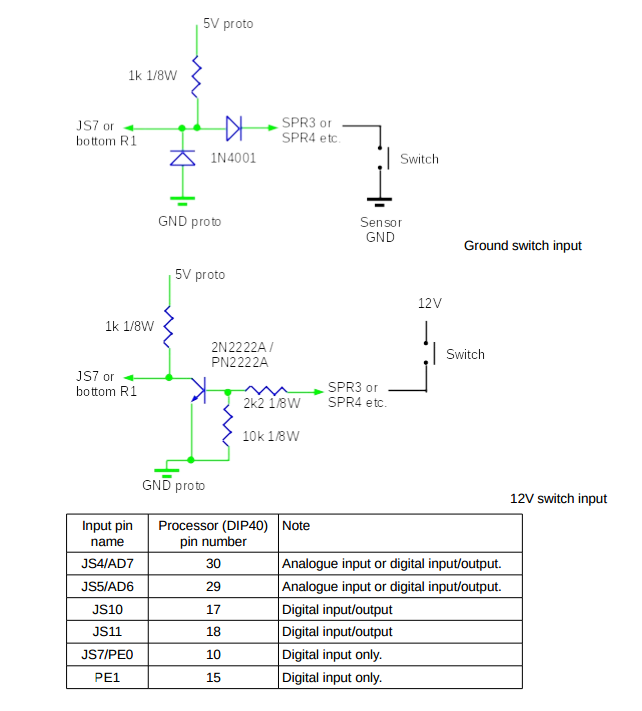 Here is an excerpt from the manual on the protective circuits for a ground switched input and a 12v switched input
