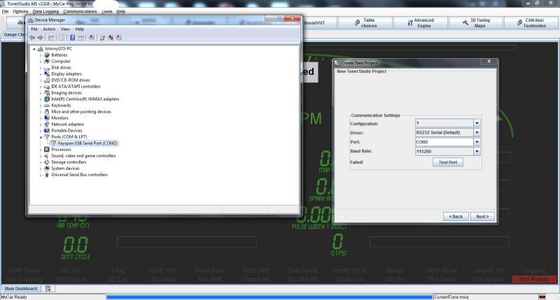 My diypnp for a 1.6 is not connecting to tunerstudio anymore. I am using a r232 to usb adapter set up following msextra's COM connection write up. I was able to get my MS to auto detect and read the bar pressure and air temp correctly in Tunerstudio. Then when I tried to start the car it went offline and will not re-connect. I've tried making new projects, port diagnostics and nothing. I hope I didn't fry anything internal to the ECU. Also, I removed the 10A fuse form the engine bay fuse box as mentioned in the MSPNP write ups.