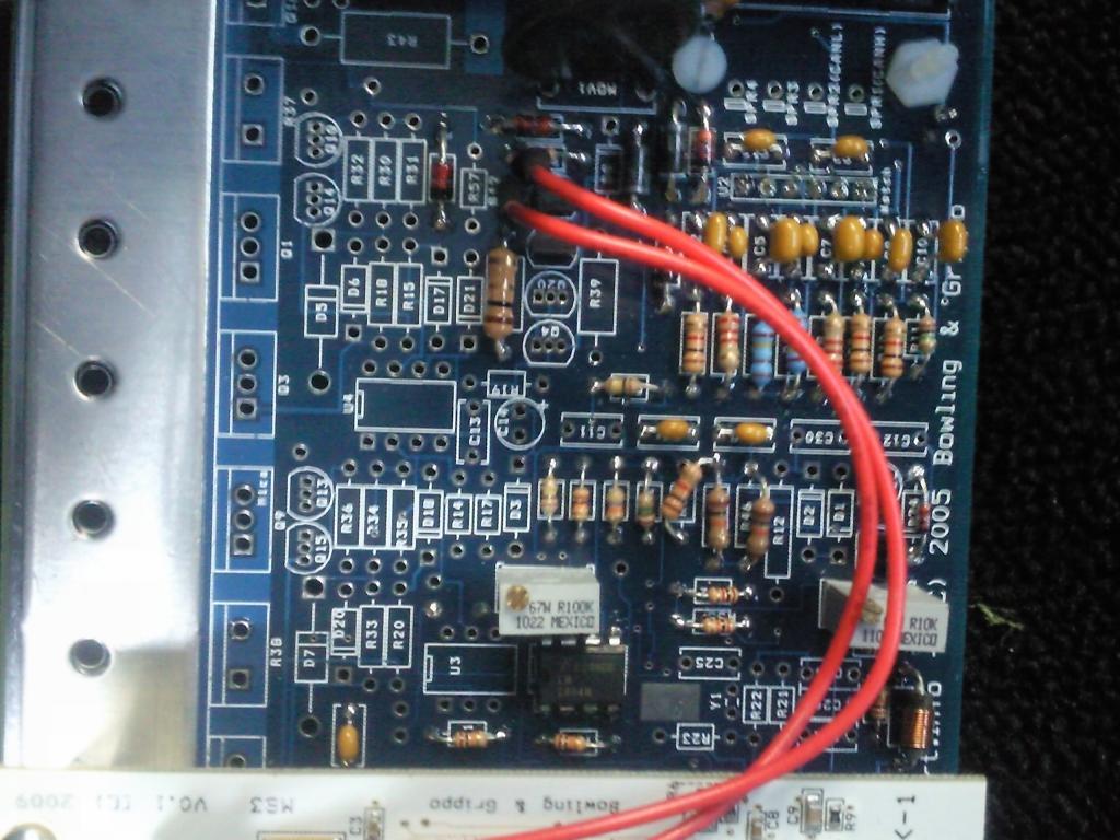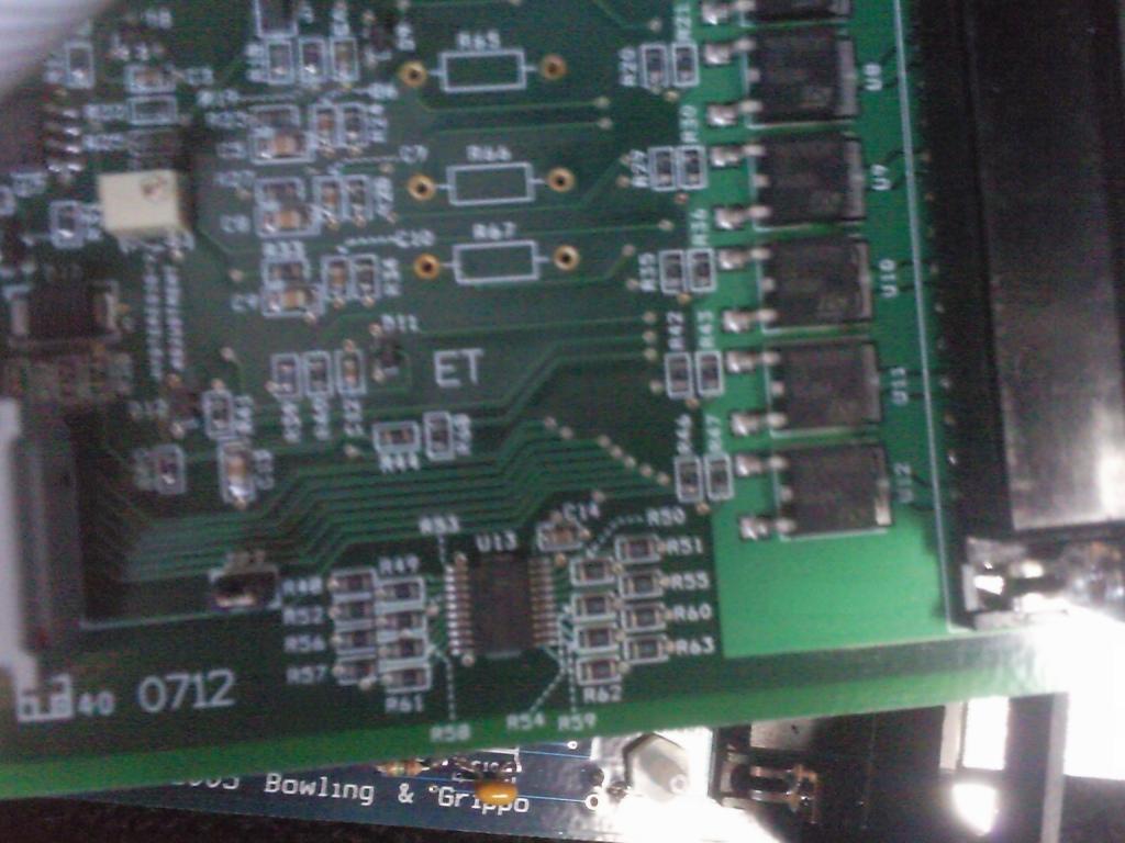There are two more pots you can adjust here for the crank signal on the mainboard. Turn them both back 12 full turns coutnerclockwise, then turn the bottom one (near the(c) 2005) back 7 full turnsclock-wise.
