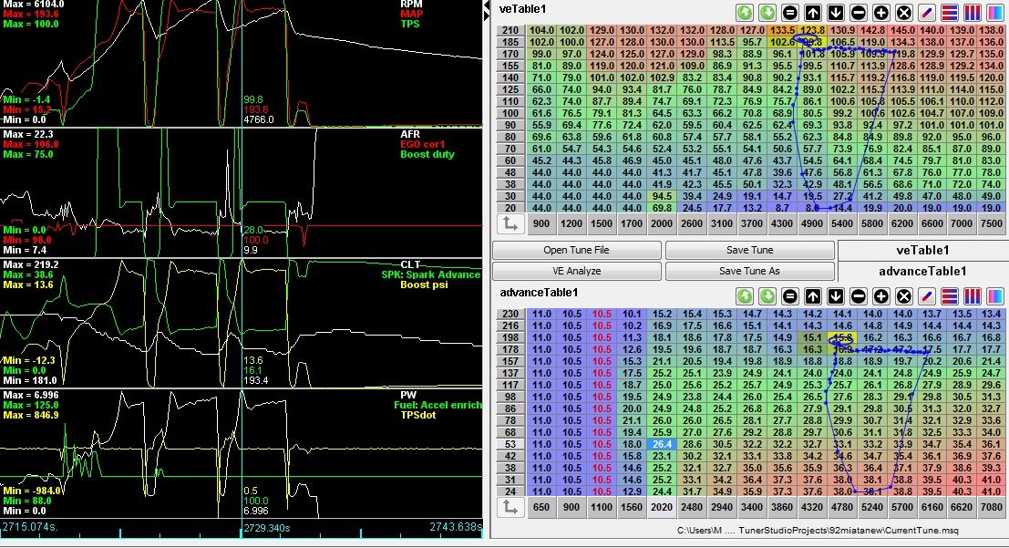 Increased duty cycle to 210 kpa, scaled everything else up. Looked over logs, saw duty cycle at 32 at 177kpa, so increased the cells in that range to be close. Adjusted everything else to make sense, going for a drive brb.