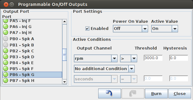 What am I missing here? Why can't I set ALL spare spark and ignition outputs to light up in a "rpm > 3000" test condition? Have I misconfigured something or is this a bug with MS3x/TunerStudio?