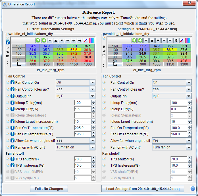 ..so followed the advise and loaded my last tune. Got a compatibility error log. Saved it since I had an eerie feeling i'd be posting it soon. At the difference report I said to use the settings from the tune rather than ECU(attached screenshot). Calibrated TPS again. Crank, still no tach, no fire. Double checked coilpacks connected, tried again. Nope.