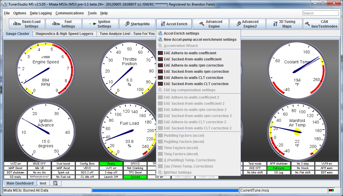 Re calibrated CLT and IAT. Looked like some values changed when I burned the new values so somethings still not right. Crank, no tach, no fire. So now I've got to go pick up the kids, it's going to drop 30 degrees in the next few hours and freeze over and it'll be a week before I can get back to the now dead car.