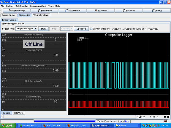 Okay, I confirmed that it is in the MS. I have even tried my MS in other stock miata's and all the logs are the same as the one I posted before. I have checked all the settings I can think to. I have checked everything loaded into mine against the start-up maps on DIY's website and everything looks the same, to me at least. I am obviously missing something.