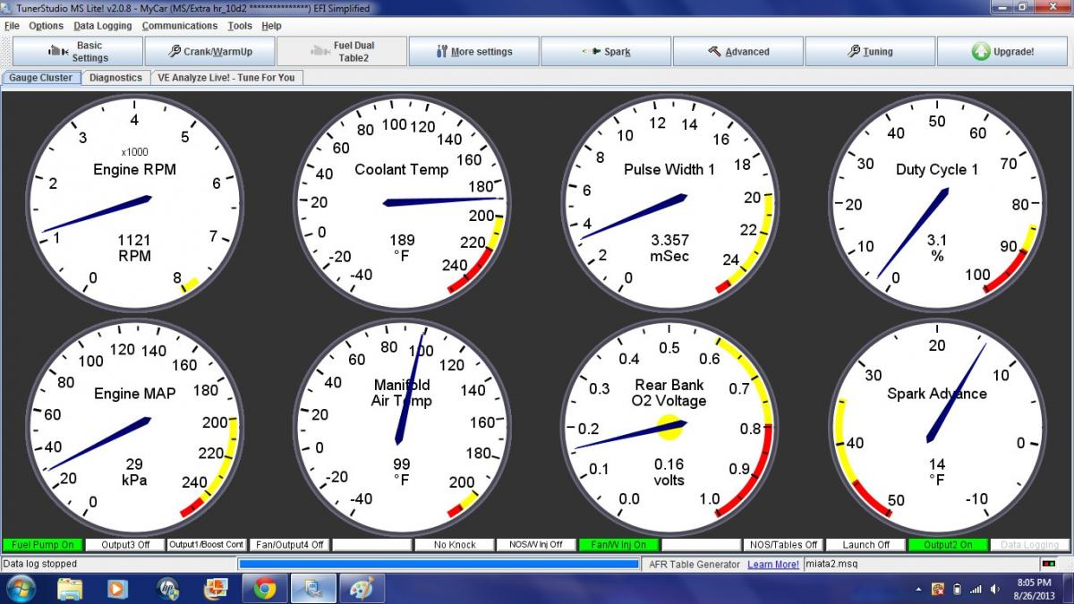 Got it put in for mock up purposes just to see if it would run. It does, but it's shaky. I calibrated the TPS, set spark, all that stuff. I noticed the Fan w/inj on button at the bottom of tunerstudio keeps flashing green and it seems that's the problem with it, what is this?