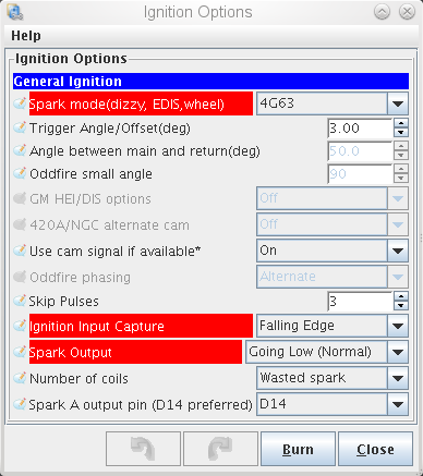 Without changing from single coil, can you test the all four coils using the output test mode? Get all four plug wires on the valve cover, and test for spark using Coil A and Coil B. Then switch to the settings below and test again. Check if the igniter gets hot with the settings below every 15 seconds - you don't want to blow your igniter!