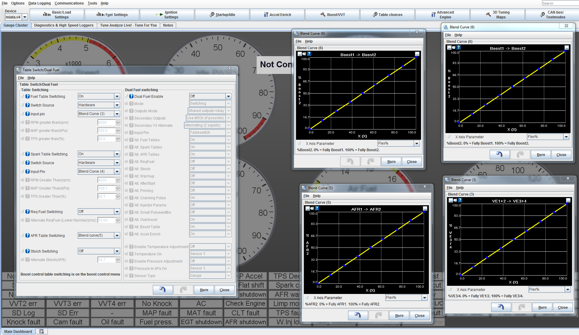 Yeah, for some reason I remembered switching blend curve on, and all the individual blend curves become active (spk, fuel, afr, boost), but when changing a drop down to flex blend, it grays out all of those, and activates one blend curve. I'll have to play around with it more tonight. Reading through the manuals makes it seems like what I just said is not true at all.