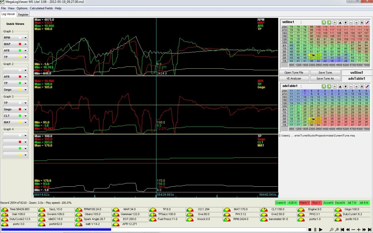 First snap is when things are generally behaving. I drove the car into town, went into the store, and when I started the car, the AFR was crazy lean.