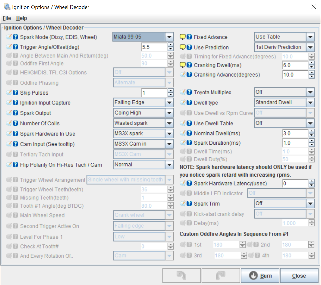 I also attached my ignition settings. I tired starting with rising and falling edge. No difference.
