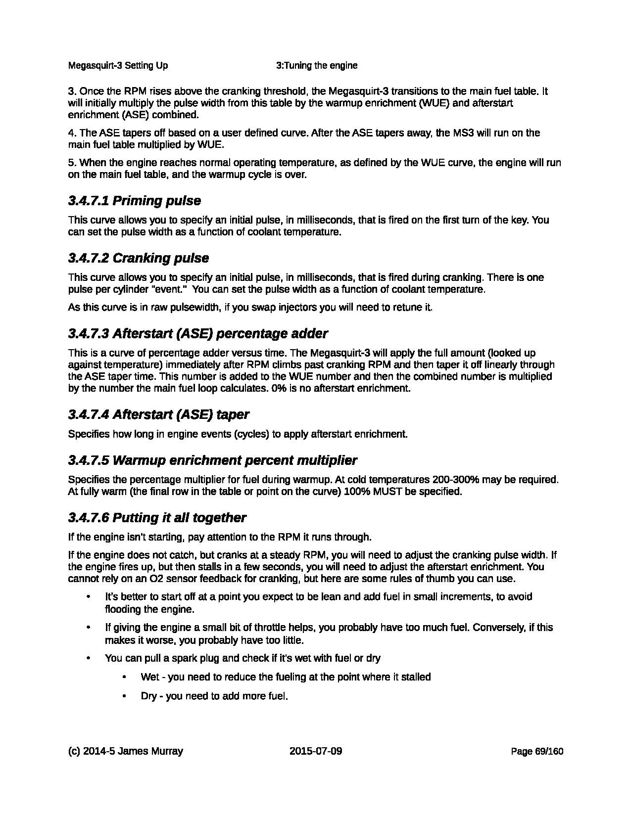 The following hints are assuming that your VE fuel table is at least in the ballpark of where it should be, along with corrected priming pulsewidths