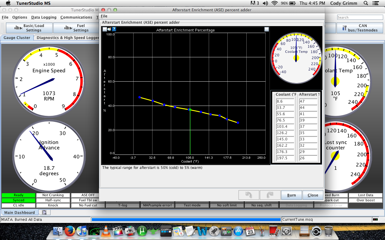 After adjusting some tables, the car starts up fine but it still has a lumpy/up&down idle right after it starts for about 5 seconds. Then idles fine. Here's some more screenshots of some ASE & cranking tables