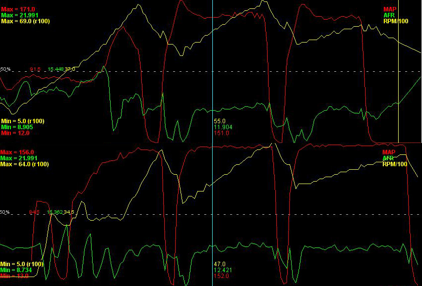 Below is a log of a few pulls and it holds pretty steady under full throttle between 152 - 154 kpa.