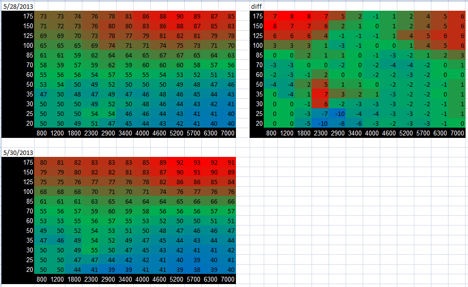 The concern is that the logged pulls from earlier (Post #60) were showing a pretty consistent ~12.5:1 in boost (i.e., does not match your AFR table). Additional VE tuning, concentrating in the boost areas, should fix this.