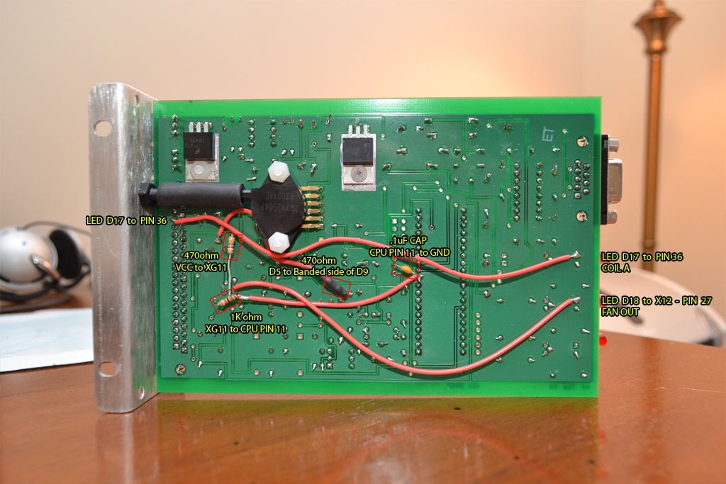 - 270 ohm resistors for coil A and coil B spark outputs (pin 31 and 36)