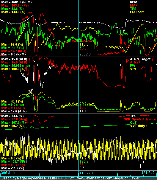 So I set VE, AFR, and spark to the DIY basemap and took a quick data log. Why does actual AFR not match AFR target?