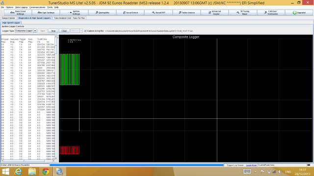 Right now the coils and injectors are unplugged and I'm cranking the engine in the hope of getting a sync following this guide. However, there is no RPM signal at all and the Composite Logger records a Cam signal but no Crank signal: