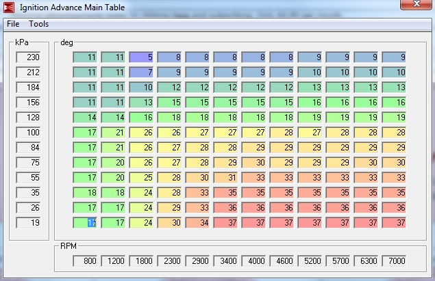 And if you look at the 100kPa row, it's very similar to the oem map, a little advance in lower RPMs and less advanced in upper rpms...but not by much.