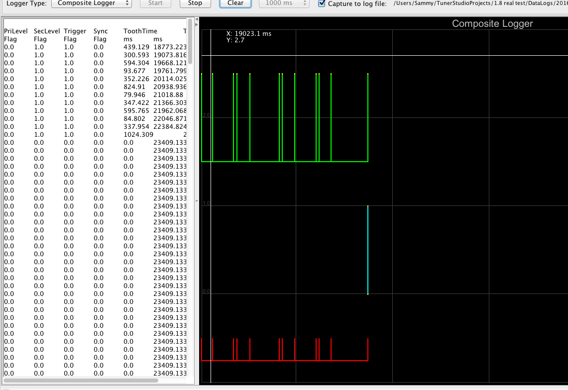 You're right about composite being finicky. Messed with it some more and gave it 10+ sec before cranking and got some data to show up. The first log is near 10 seconds of cranking, the second is a shorter crank that also displayed the attached plot in tunerstudio. I also removed the cam sensor and tried waving a piece of steel in front of it in various patterns and got plots to show up that seemed to resemble what I was doing (third log). So the cam sensor should be good.