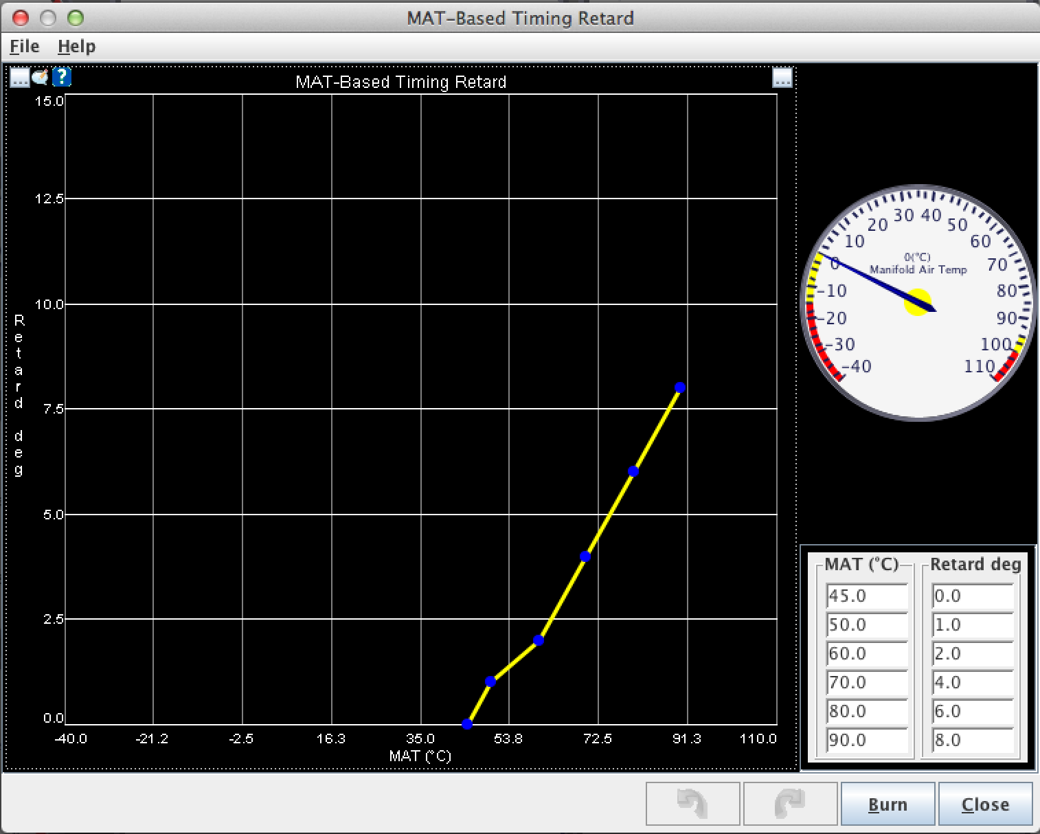 As an example, you could play with the MAT fuel correction and have it begin adding fuel above 120*F, and by 150*F it's enriching AFRs from say 11.0 to 10.0. And at the same time, you're MAT based timing retard pulls say 1* at 140 and 2* at 160.