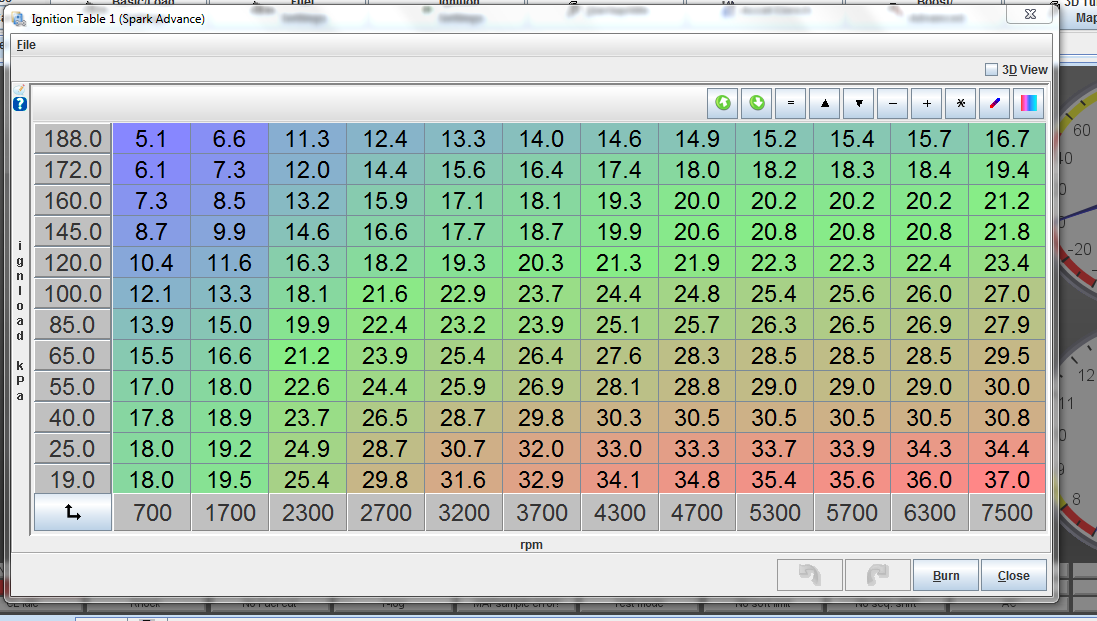 Here's my timing table. It's not ideal, I pulled 3 deg out of the upper boosted cells and it cost me 52whp... But I saw a tiny amount of metal on the plugs (det) so I pulled timing until I could get the spark tuned better. I actually think the det was happening at high load/low RPM/high AITs but I pulled across the entire table to be safe.