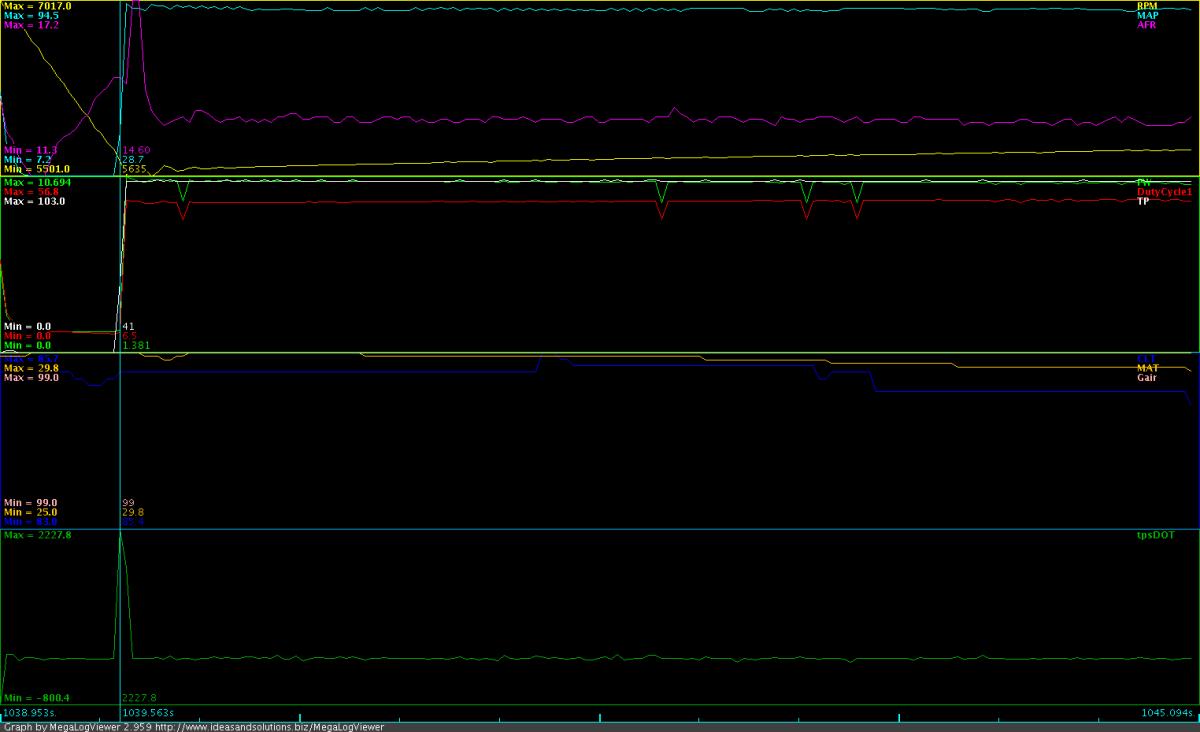 Notice in the 2nd image how high MAPDOT is when TPSDOT is not that high... if the turbo is spinning and you slowly open the throttle... air rushes in.