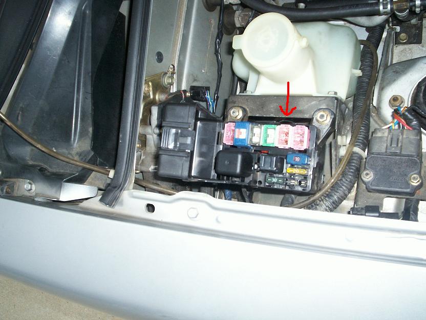 2 pics attached. The red arrow in the first shows where I put the SPDT relay. The arrow in the second shows the unused fuse holder I was able to use. I used a 30A fuse (fusible link). The fuse to the right is the fuse for the driver's side fan and is 30A.