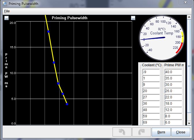 I know I have to make an adjustment to my cranking pulsewidth or priming pulsewidth tables but I am not sure how much to alter it.