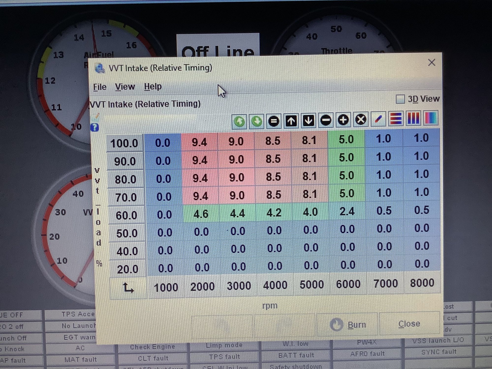 Mine is an extreme case as i run nearly to 8K, although I run zero VVT angle above 6K. Have to retune anyway as I'm going return system so may as well address everything.