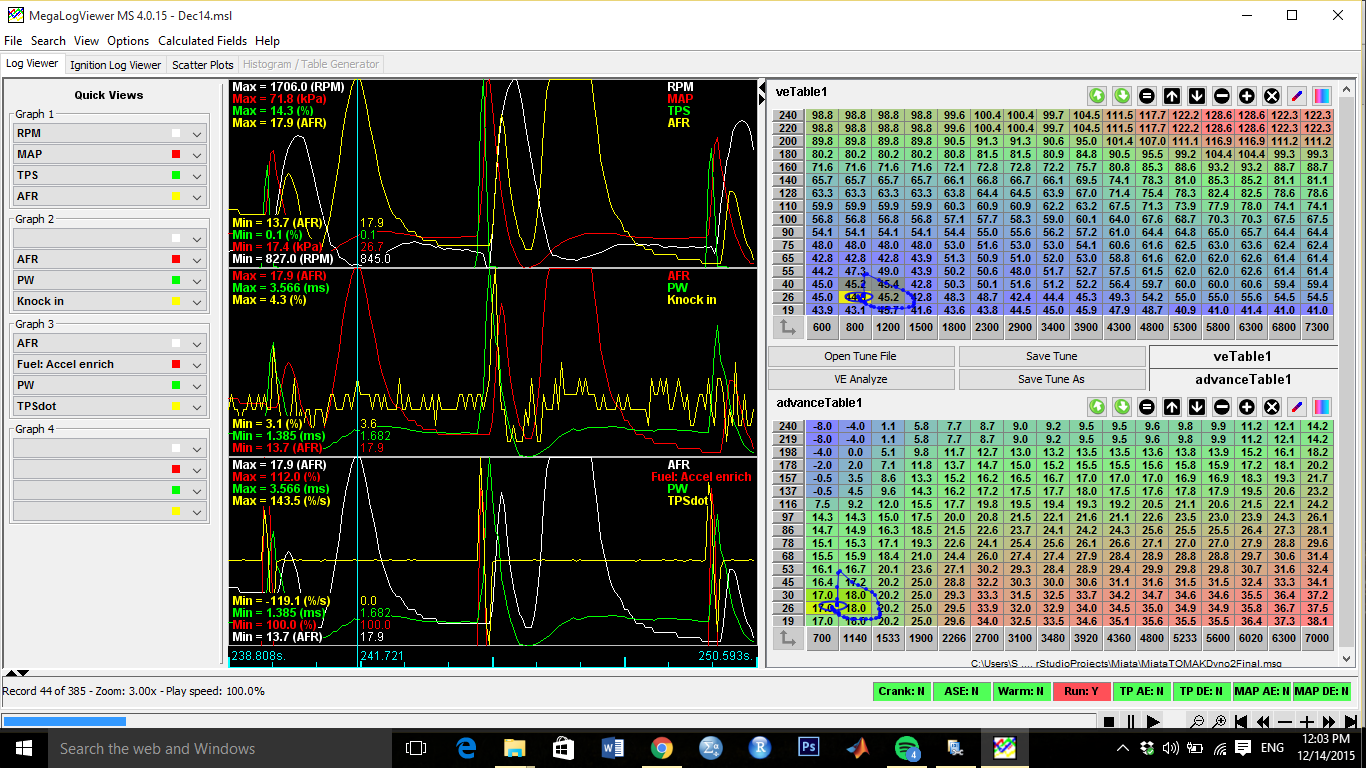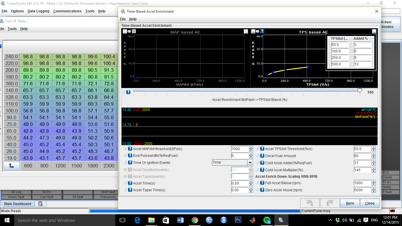 My problem at the moment is opposite that. When I blip my throttle, I get fuel, but then right after, for a split second, the fuel cuts off completely- AFR= 18.