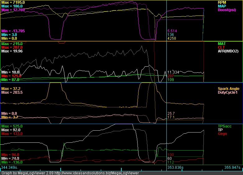 The car ran GREAT at first (the "normal" log was taken on that same code, >10psi boost with no issue, the car hauled a$$).