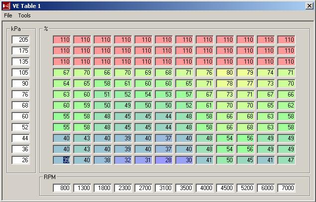 That gives you 10kPa resolution from 10-70kPa. If I'm cruising at 70mph, I vary from 40-70 all the time. You can also get more resolution by adjusting the RPM columns in these rows.