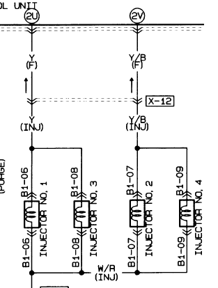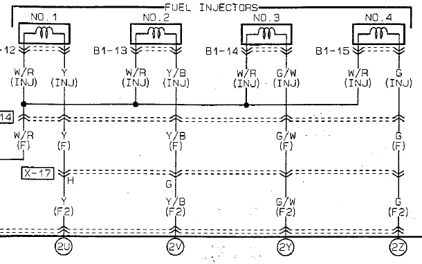 Ok, I'm going to assume that you have a '94, since you haven't told me otherwise and it's not in your sig. Here's the wiring of your injectors at the ECU connector.