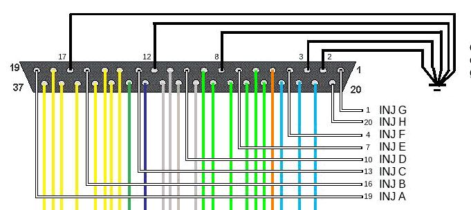 And here's the pinout of the MS3X connector, with regard to the injectors: