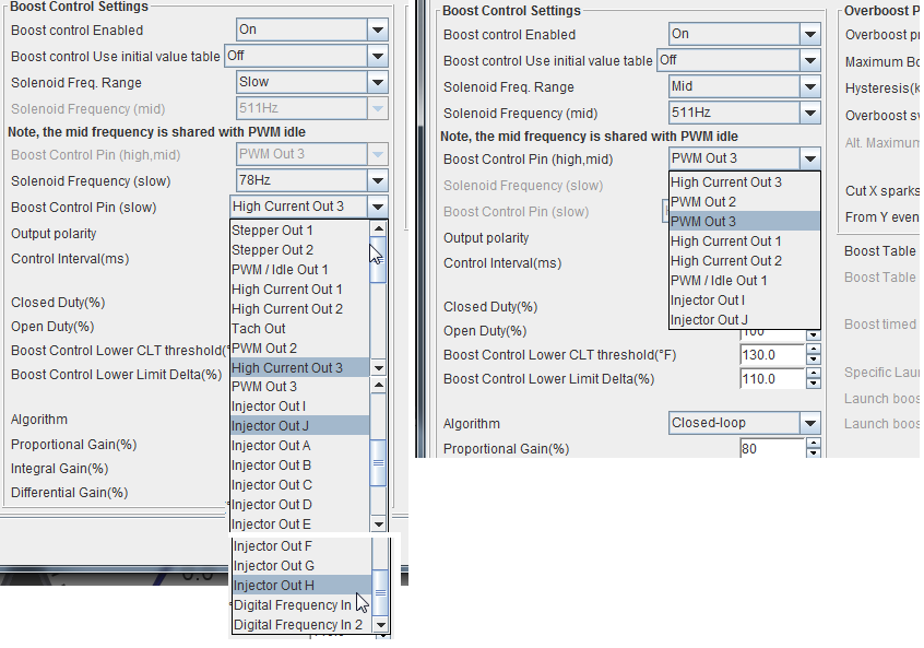 Idle and VVT are both tied to "mid", and EBC can use mid or slow. When using Mid you get the choices shown above, and when using Slow you get the (other) choices, shown above. Meaning they aren't tied to specific pins, the limitation is timers in the CPU, not the pins on it.
