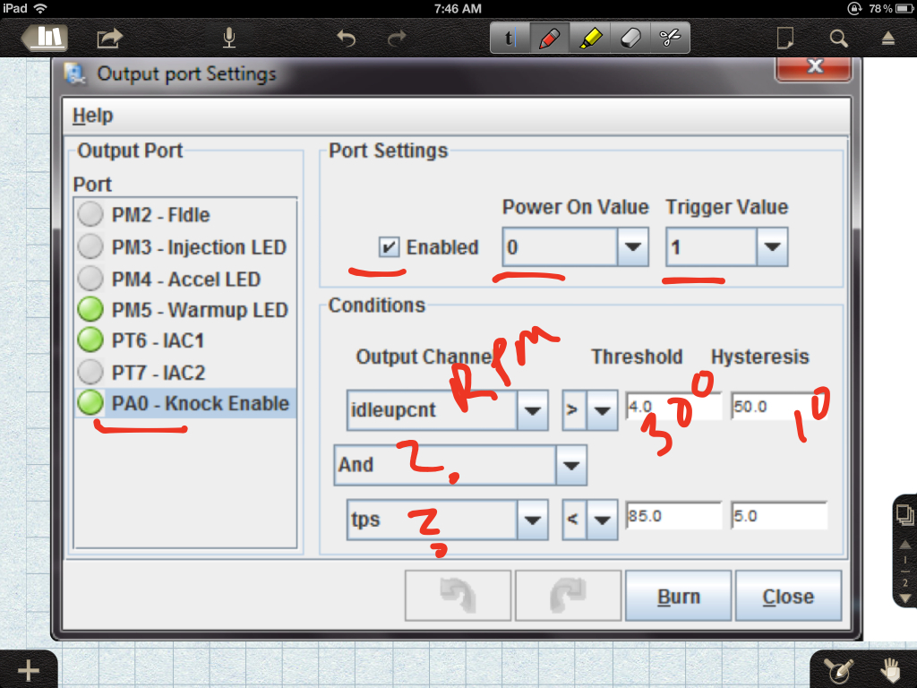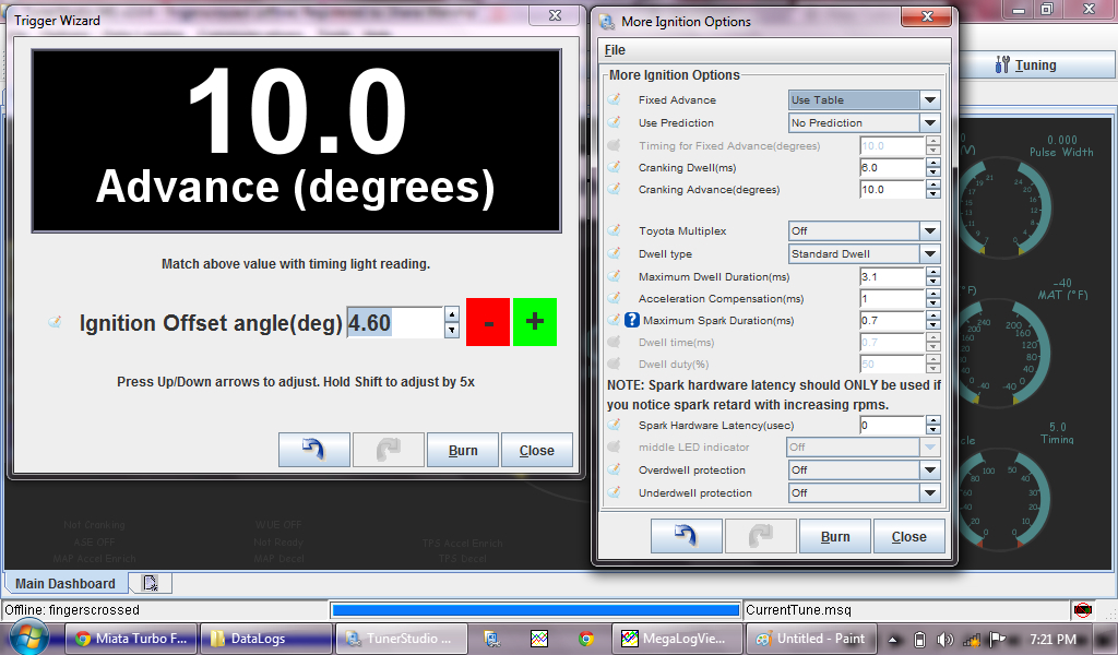 Idled nicely, so I moved on to setting base timing. Fixed at 10, timing light showed around 14, moved to trigger wizard. Pressed the big green plus once, clicked burn, immediate stall. Oh boy..