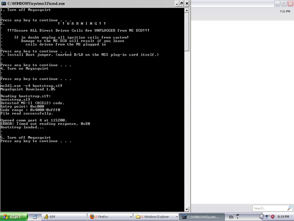 its not communicating with your MS, make certain the com port is valid.