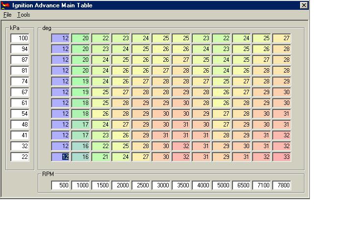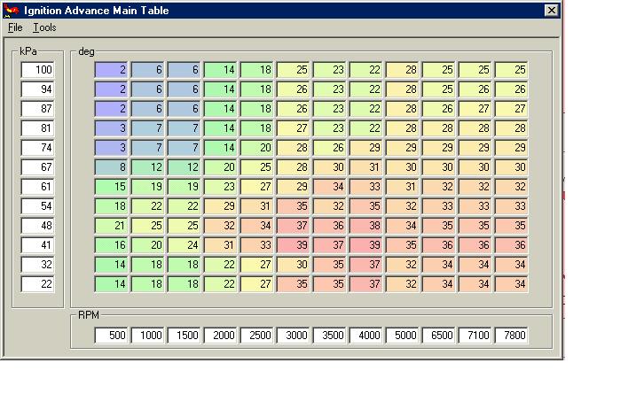 Do that for each rpm value in all of the empty kpa rows until you fill in the entire table, then divide all of the numbers by 4 to get the actual degrees. That is probably the best starting point that you can get.