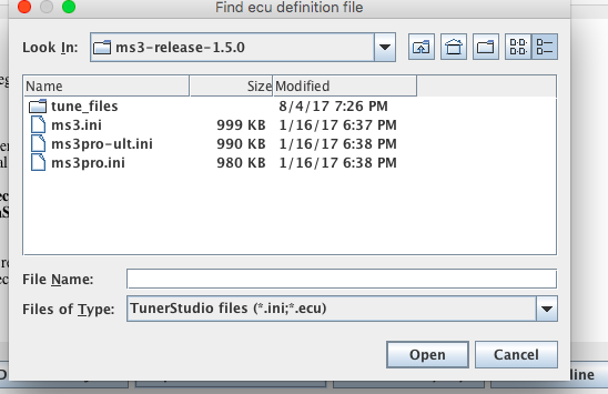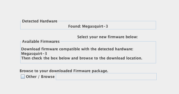 Does that make any sense? It's not in the dropdown is because my firmware is too old i think. I tried to use the firmware update on the software but it doesn't let me auto update. It's asking me for a the megasquirt-3 file.
