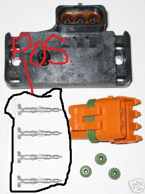 Yeah, those look similar to the IAT sensor pins. Not having the correct crimper I just used needlenose pliers to crimp it to a mechanically sound condition, and then soldered it. Those little rubber grommets help seal the connector and also provide some strain relief, so make sure the wire you use fits pretty snugly inside them.