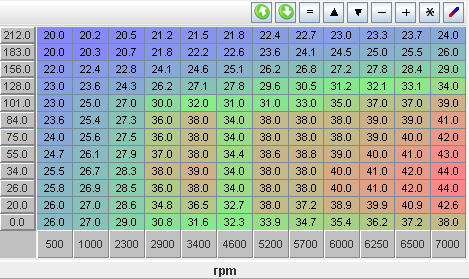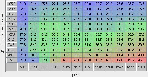 Third: +5 Degrees of advance (the last table posted bumped up by 5 degrees all over)