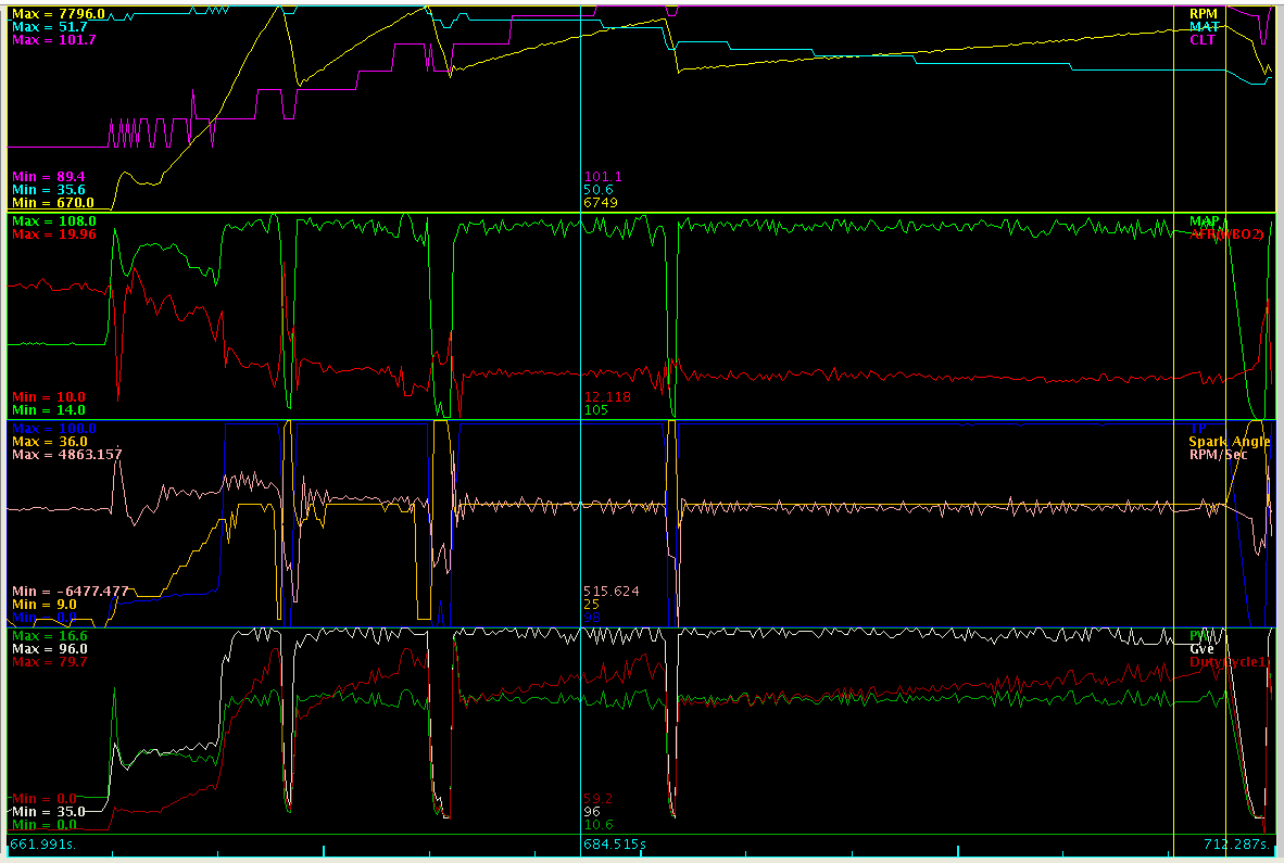 Now, over the past year my car has been megasquirted I haven't given it much thought, but now with the d-rifting season in full spin i find myself hanging around in the 7k rpm range more often. I've noticed that my rev limiter doesn't 'bounce' off the limit like a stock ecu does, it just hangs in the 7k range instead, and while I'm sliding I can't always pay attention to the tach and I don't know if my engine is just revving to the moon or not. I would experiment with it more, but it seems to work, and I also don't want to be jarring my engine too much at it's maximum rpm.