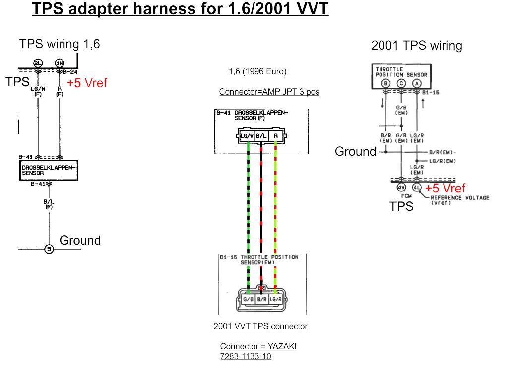 so i have a NB2 throttle body + TPS on my 94-97 engine in a 92 car. (lol i know) I've tried a couple different TPSs but i hadn't considered my wiring might be wrong based on incorrect diagrams.. From memory, i think i have mine wired so that if you are looking at the throttle body head on, the top wire is +5, middle is signal and bottom is ground. Is that correct?