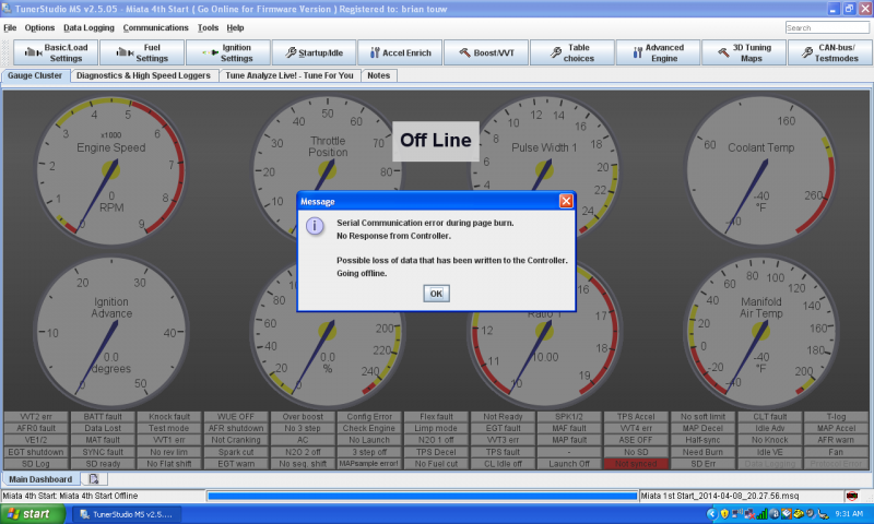 Weds - Installed TPS, installed MS, got everything set-up per brains gravy train manual. Car fired up and ran beautifully.... Until I went full retard. I didn't have a timing light at my house, and got impatient. Decided to drive it around the block with VE analyze on, and my USB cable went to **** and lost connection mid-drive. Still seemed to drive ok after cable went and I made it the rest of the way around the block to my house. Tried to re-connect, but cable wasn't cooperating. Decided to attempt driving it as-is 5 miles to the store to grab a cable. Broke down a mile down the road. Thankfully I still had the stock ecu and TPS, so I swapped them back in and went on my way to get the cable. Decided to wait till tomorrow to dig into it again.